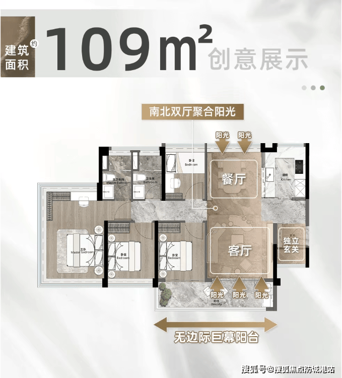 109㎡四房两厅两卫次要面向三代同堂的家庭,户型朴直通透,动静分区合理,厨房取餐厅相连,烹调动线流利,可以或许满脚三代同堂的栖身需求,兼顾适用性和舒服度。
