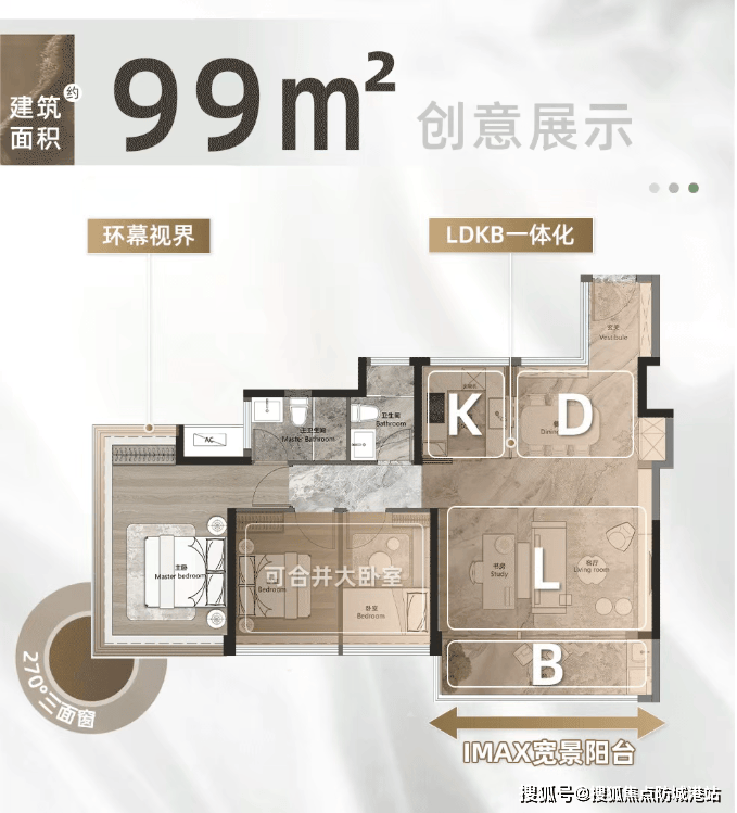 约5。3米全景阳台,毗连客堂和次卧,不只添加了室内的采光和通风,还为业从供给了一个宽阔的休闲空间,业从能够正在阳台上养花、种草、晾晒衣物,享受惬意的糊口。从卧配备270°环幕飘窗,视野宽阔,可以或许赏识到社区内的绿化景不雅,同时添加了从卧的利用空间,业从能够正在飘窗上看书、品茗,提拔栖身舒服度。
